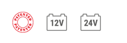 - Chargeur de batterie et démarreur pour la charge des accumulateurs à électrolyte libre (WET) avec tension 12/24V et le démarrage de tous les types de voitures, fourgons et camions légers.